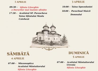 PROGRAM LITURGIC SĂPTĂMÂNA A VI - A DIN POSTUl MARE 30.03-05.04.2026